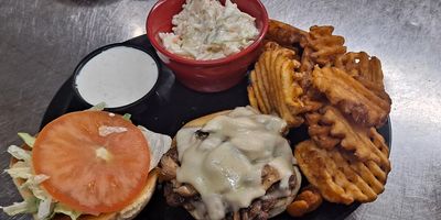 Sandwiches served with 2 sides: waffle fries salad, coleslaw, or cottage cheese.